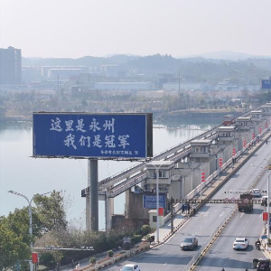 这是永州城区的祝福广告牌。新华社发(蒋静摄)