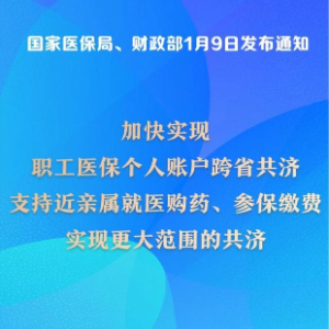 为减轻群众医疗费用负担,国家医保局会同财政部1月9日发布通知,加快实现职工基本医保个人账户跨省共济使用,支持近亲属就医购药、参保缴费。
