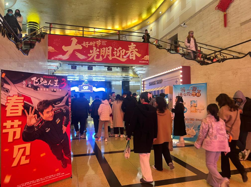 光影盛宴点燃市民观影热情,在上海,“春节阖家看电影”这一新年俗愈发深入人心。在瑞虹新天地寰映影城,带着孩子看完《熊出没·年年有熊》的李女士笑着说:“每年春节带孩子看一场动画电影,已经成为家里的‘固定传统’,今年这部片子,孩子看得又哭又笑,特别投入。”特意带全家来看《飞驰人生3》的张先生则表示:“过年就想热热闹闹看场大片,图个喜庆好彩头,和家人一起放松一下。”