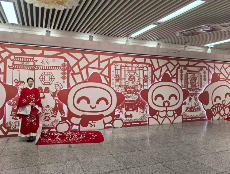 2025年12月31日的武汉黄浦路地铁站内,通勤的人流中,不少身影放缓了脚步。有人在红色剪纸长卷前拍照,有人在公益展示墙下驻足,活泼的“乐小星”向过往的每个人传递着笑意。这里不再是匆匆而过的通道,更成为让人愿意停留的温暖空间。