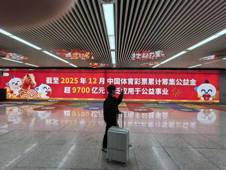 她身旁的“公益展示墙”,则让这份支持变得清晰可见。“截至2025年12月,中国体育彩票累计筹集公益金超9700亿元,广泛应用于公益事业”醒目数据配以直观的图示,清晰勾勒出公益金在奥运争光、全民健身、社会保障、教育助学、乡村振兴等领域的流动轨迹。这份“透明账本”,诠释着体彩“来之于民,用之于民”的发行宗旨,让每一份善意的汇聚都留下清晰足迹,让公益不再是遥远的数字,而是触手可及的温暖。