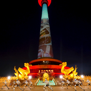 宇树机器人亮相中央广播电视塔光影秀,以功夫之韵,展国之科技。