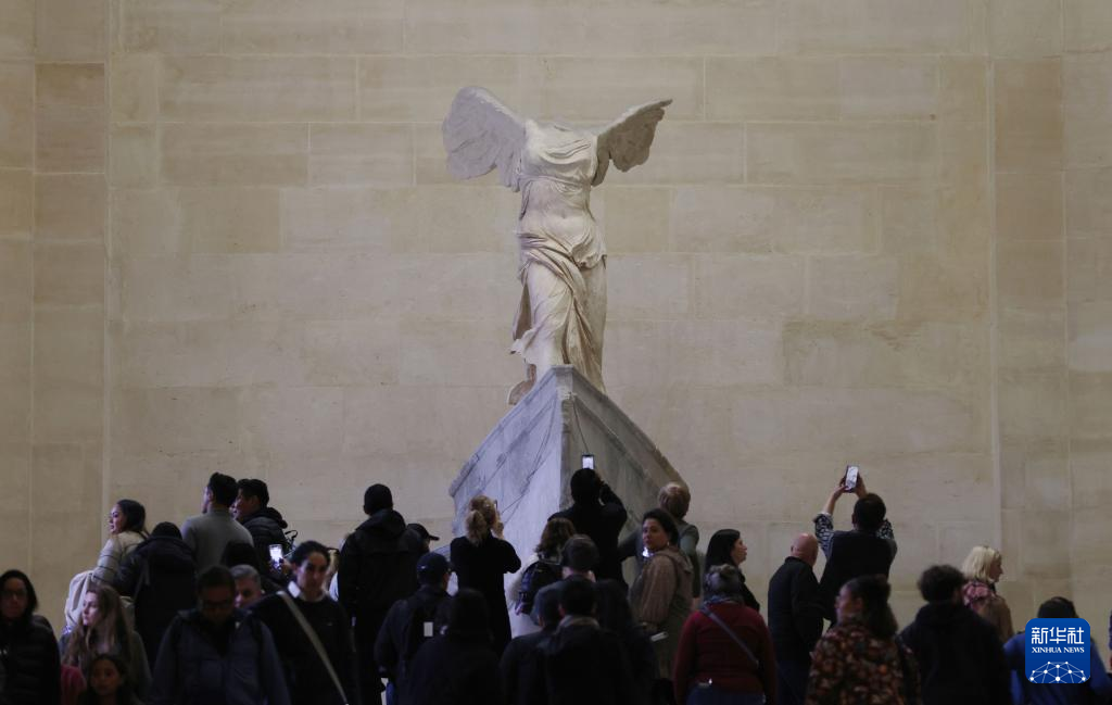 3月22日,人们在法国巴黎卢浮宫参观《萨莫色雷斯胜利女神》。