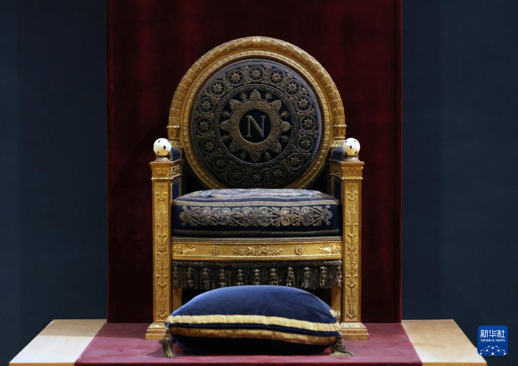 这是3月22日在法国巴黎卢浮宫拍摄的拿破仑一世宝座。