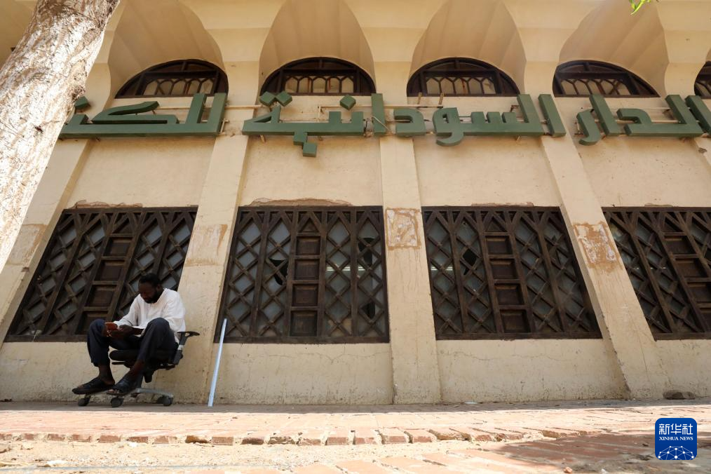 8月17日,一名男子坐在苏丹首都喀土穆市中心的“苏丹书屋”前。
