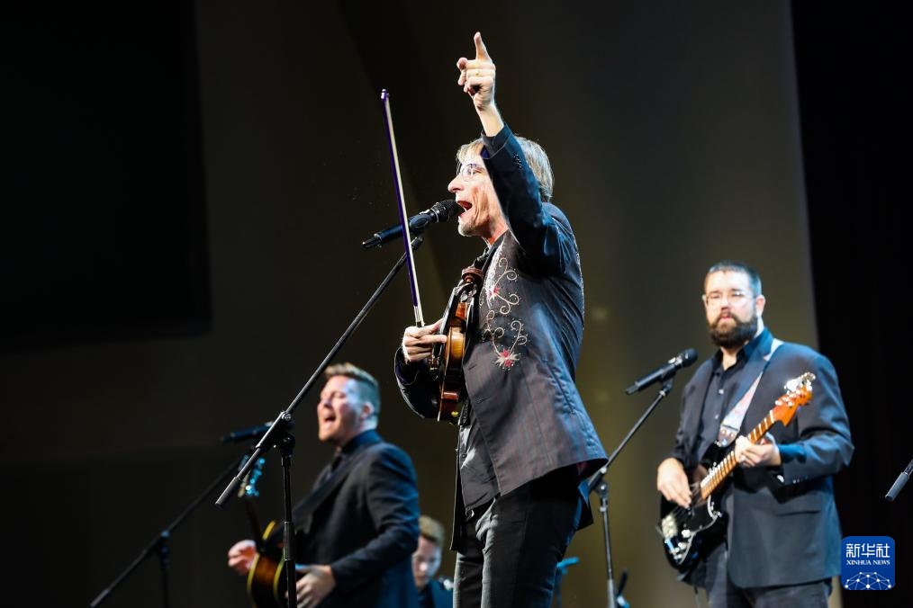 9月22日晚,来自美国的“马掌路”乐队在“相约敦煌”国际文化交流演出活动现场表演。