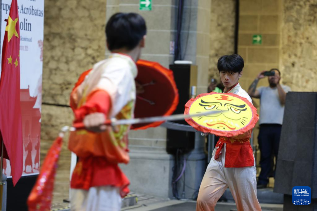 9月23日,在墨西哥首都墨西哥城,河南省杂技集团的演员在墨西哥参议院表演太极。新华社记者 李梦馨 摄