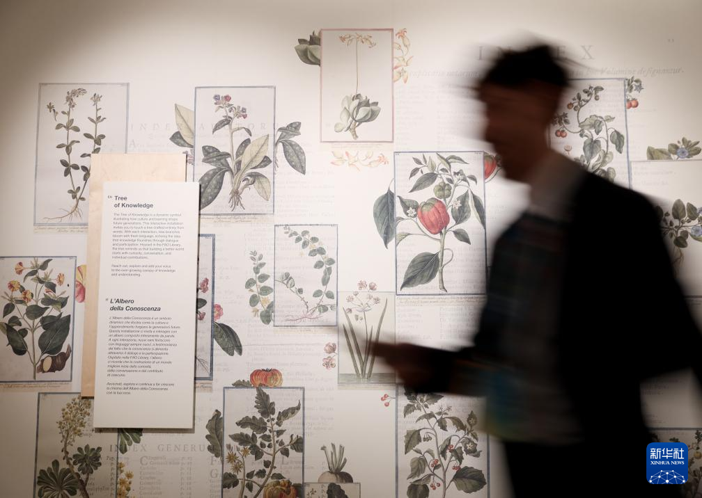 10月16日,在意大利罗马,嘉宾在联合国粮食农业博物馆观看植物图鉴。
