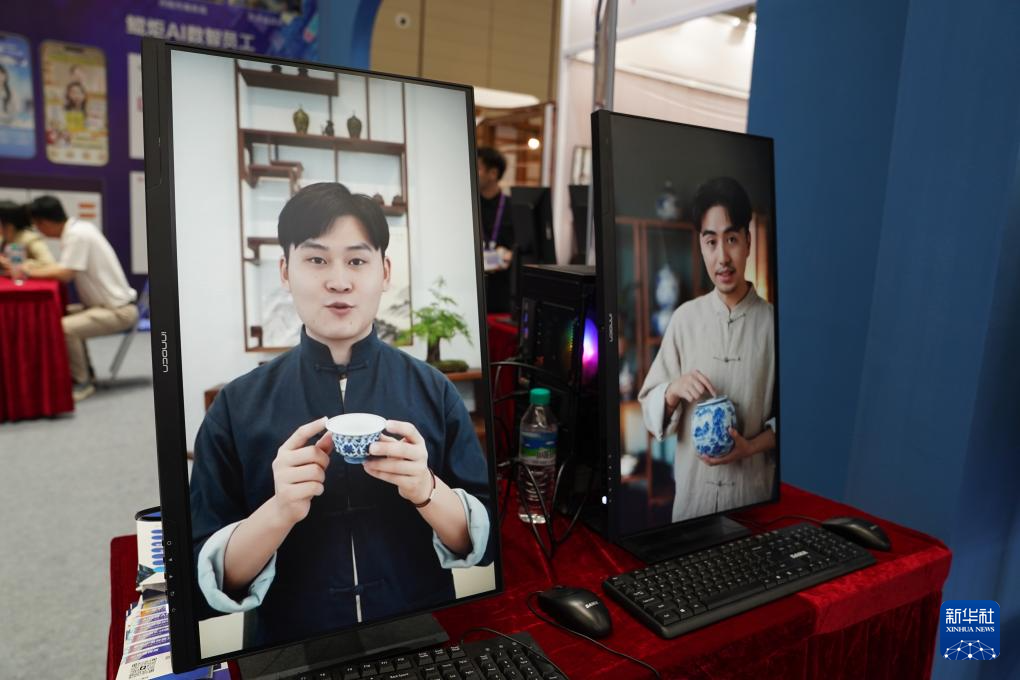 10月18日在陶瓷博览会展区拍摄的AI陶瓷销售系统展示。