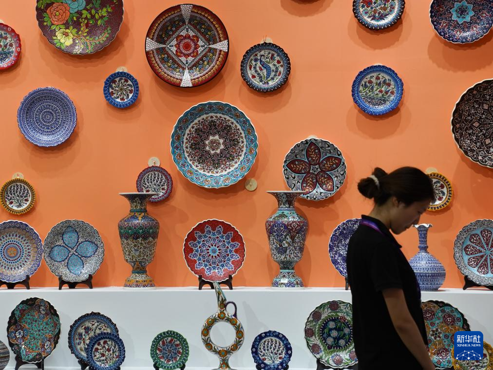10月18日,参观者在陶瓷博览会土耳其展区参观。