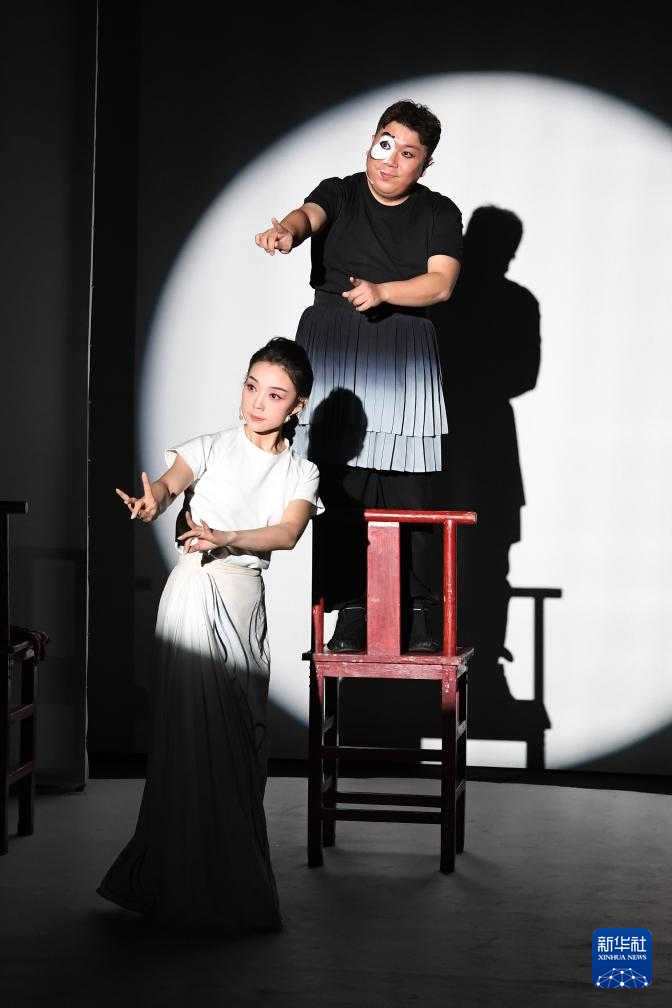 11月10日,演员文强(前)在北京繁星戏剧村表演《长相念》。