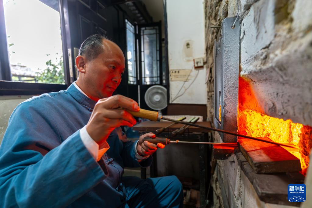 11月19日,匠人在保山市永子文化园滴制永子。