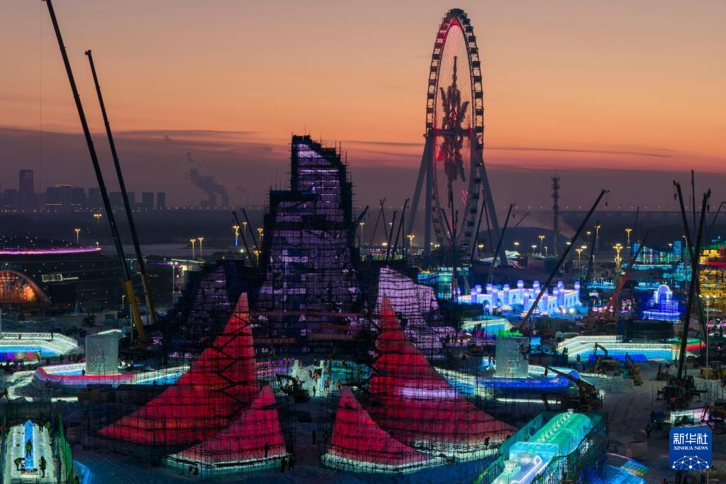 第二十七届哈尔滨冰雪大世界主塔“冰灯启梦”封顶-新华网