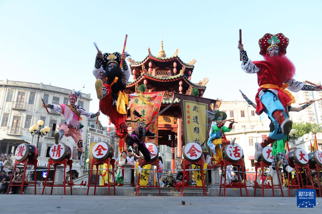 2025年11月8日,在汕头小公园“激情全运会 活力大湾区”非遗展演现场,英歌队、舞龙舞狮队联袂出演。