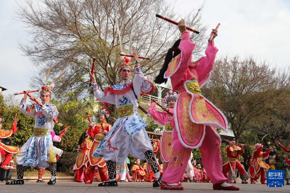 2025年2月2日,舞者在春节潮阳英歌嘉年华活动中表演。
