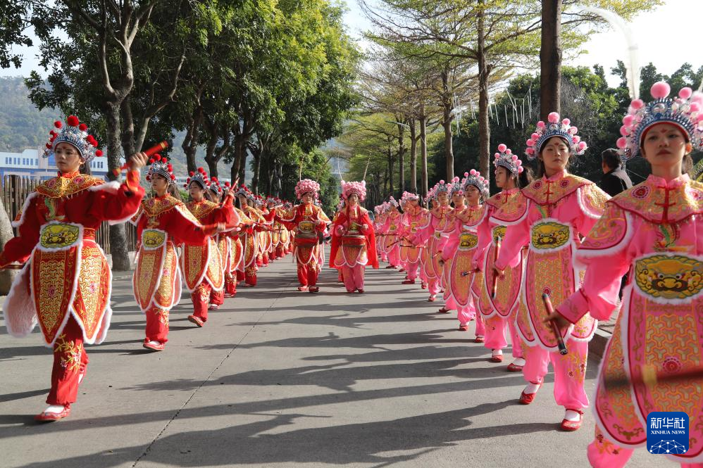 2025年1月29日,农历正月初一,英歌队在汕头潮阳区桃园社区行进。