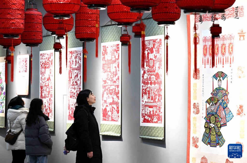 1月6日,观众在河北省群众艺术馆参观“大美河北 欢乐春节”非遗主题展览。