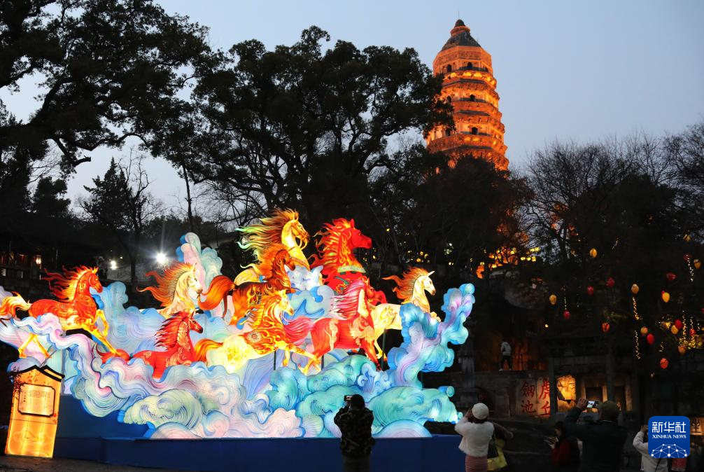2月11日,2026年苏州虎丘山灯会正式亮灯迎客,游客赏灯拍照。