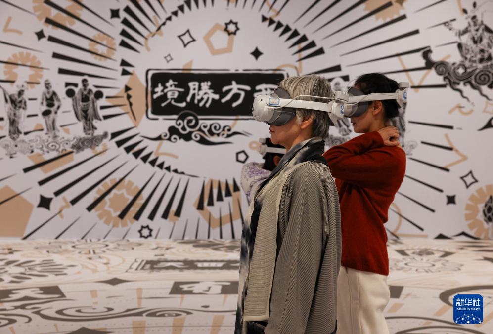 2月27日,参观者在“既往未来——小西天文物撷珍与悬塑艺术特展”体验VR实景参观。