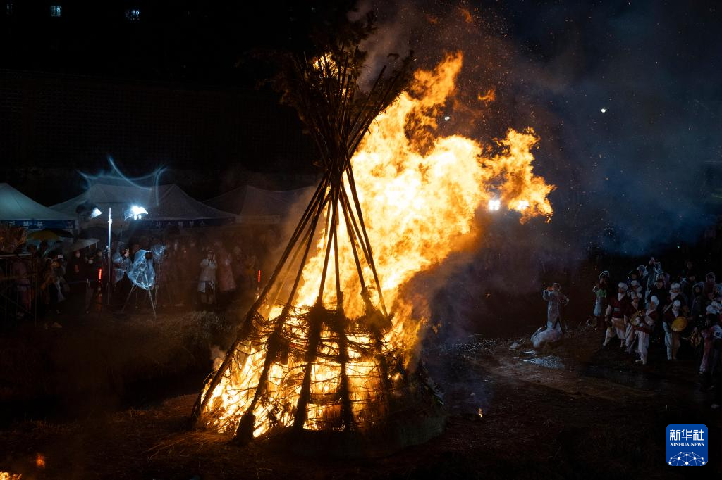 3月2日,韩国民众在首尔举行传统民俗活动“烧月屋”,迎接即将到来的正月十五,祈求新年的幸福如意。