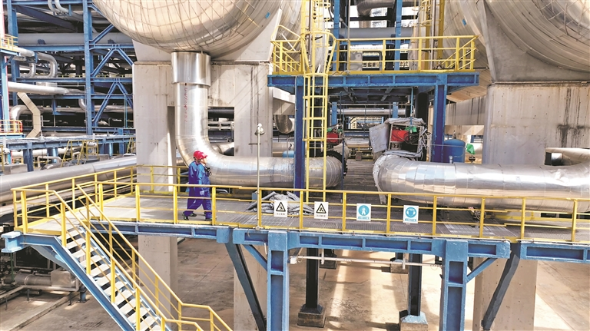 中国石油广东石化炼油四部员工在芳烃装置区巡检