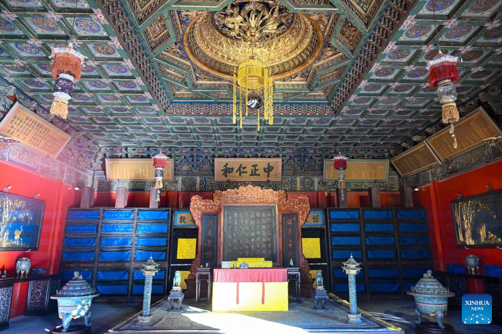 This photo taken on Dec. 25, 2025 shows a view of the Hall of Mental Cultivation (Yangxin dian) at the Palace Museum in Beijing, capital of China. After nearly a decade of comprehensive renovation, the Hall of Mental Cultivation reopened to the public on Friday. (Xinhua/Jin Liangkuai)
