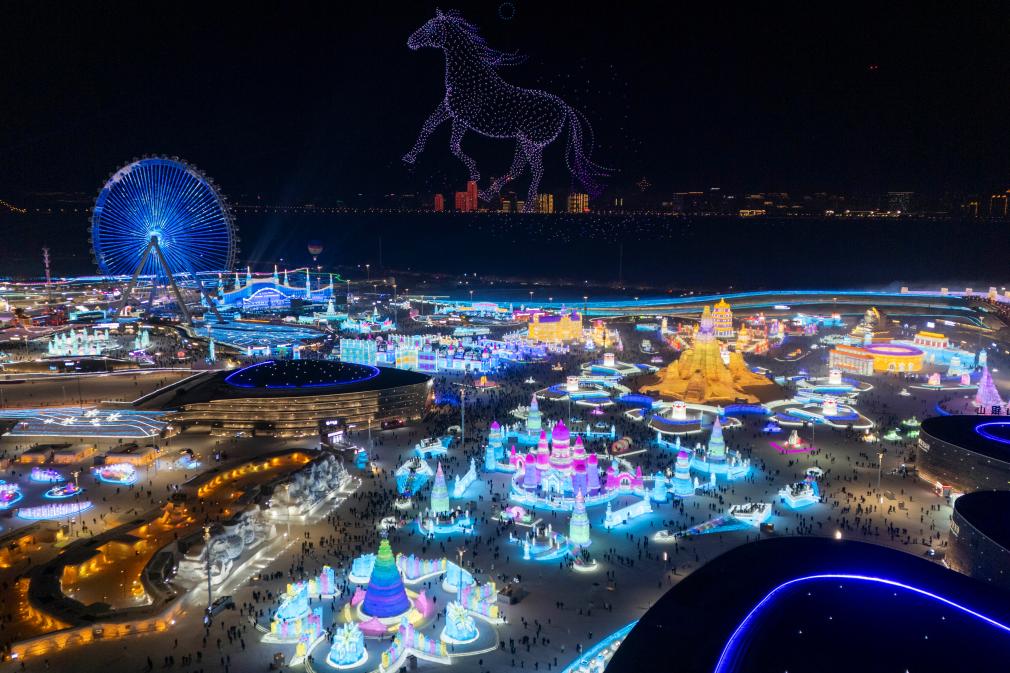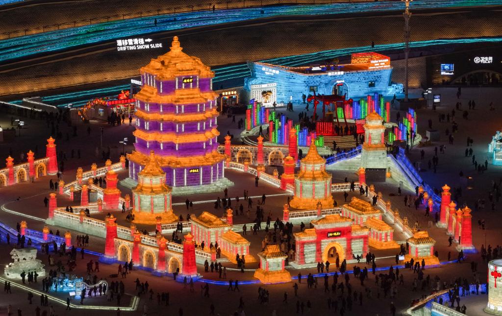 This aerial drone photo taken on Jan. 5, 2026 shows a drone light show at the Harbin Ice-Snow World in Harbin, northeast China's Heilongjiang Province. (Xinhua/Zhang Tao) A tourist has fun at the Harbin Ice-Snow World in Harbin, northeast China's Heilongjiang Province, Jan. 5, 2026. (Xinhua/Zhang Tao) A tourist poses for photos at the Harbin Ice-Snow World in Harbin, northeast China's Heilongjiang Province, Jan. 5, 2026. (Xinhua/Wang Song) This aerial drone photo taken on Jan. 5, 2026 shows a view of the Harbin Ice-Snow World in Harbin, northeast China's Heilongjiang Province. (Xinhua/Wang Song)