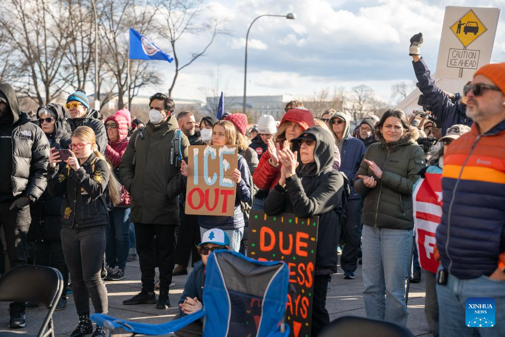 People attend an "ICE Out for Good" protest against U.S. Immigration and Customs Enforcement (ICE) in Washington, D.C., the United States, on Jan. 11, 2026. (Photo by Li Yuanqing/Xinhua)