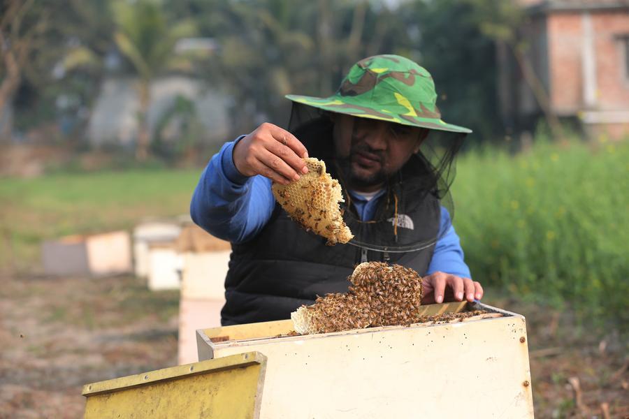 Beekeepers holding honeycombs are pictured in a field in Munshiganj, Bangladesh, Jan. 11, 2026. (Photo by Habibur Rahman/Xinhua)A beekeeper extracts a fraction of a honeycomb in a field in Munshiganj, Bangladesh, Jan. 11, 2026. (Photo by Habibur Rahman/Xinhua)A beekeeper is about to extract honeycombs in a field in Munshiganj, Bangladesh, Jan. 11, 2026. (Photo by Habibur Rahman/Xinhua)A beekeeper displays a fraction of a honeycomb in a field in Munshiganj, Bangladesh, Jan. 11, 2026. (Photo by Habibur Rahman/Xinhua)■
