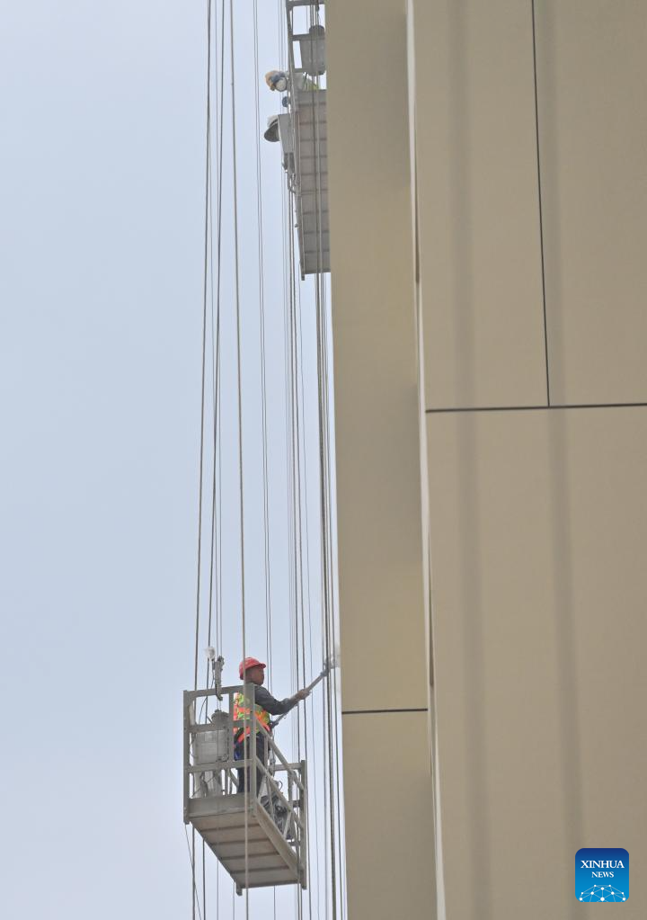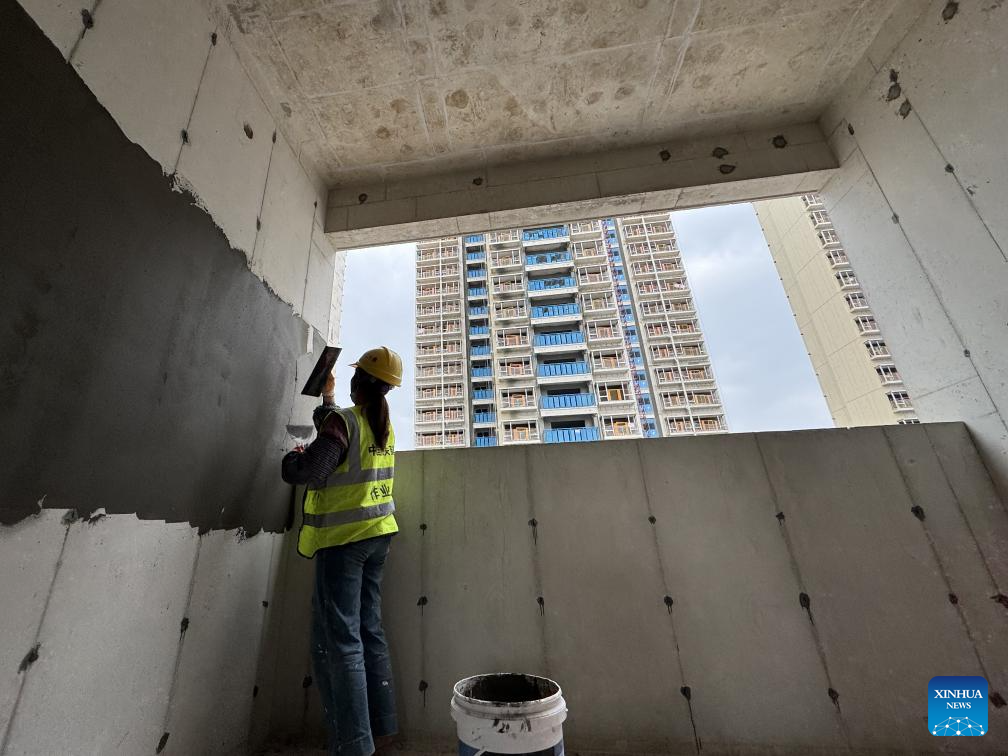 A worker works at the construction site of an urban village renovation project in Nanning City, south China's Guangxi Zhuang Autonomous Region, March 16, 2026. The urban village renovation project is a key project promoted by the local government, which has been progressing smoothly. It is expected that the new houses of the project can be delivered to the residents by the end of October this year. (Xinhua/Huang Xiaobang)