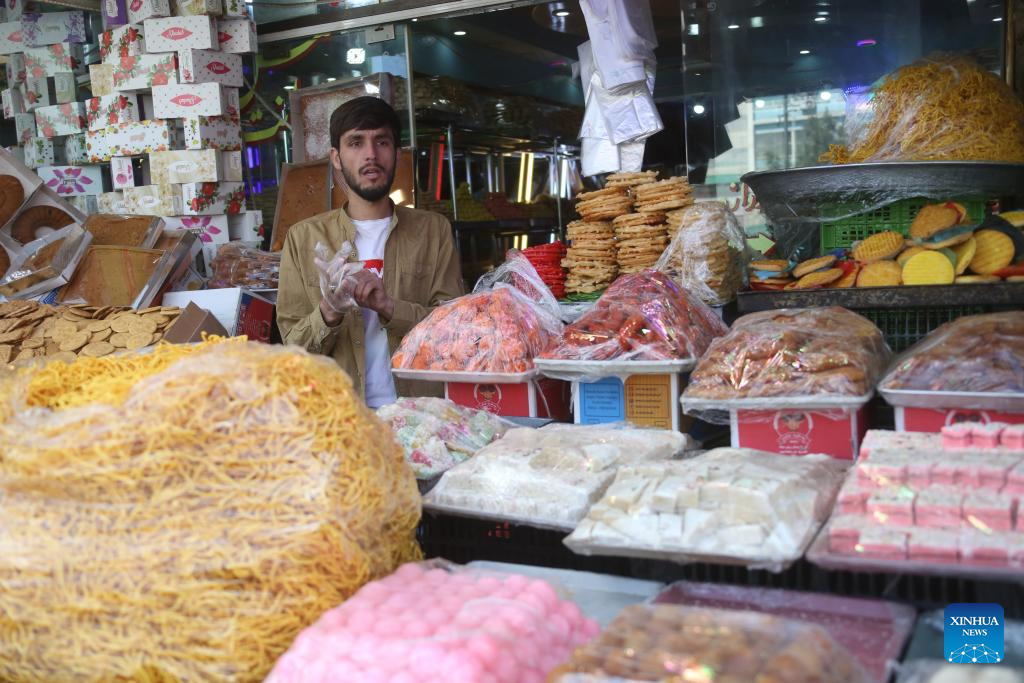 A man sells sweets for the upcoming Eid al-Fitr in Kabul, Afghanistan, March 15, 2026. As the Muslim fasting month of Ramadan nears its end, the people of Afghanistan are preparing themselves to celebrate Eid al-Fitr, marking the end of the holy month with fervor and solemnity. (Photo by Saifurahman Safi/Xinhua)