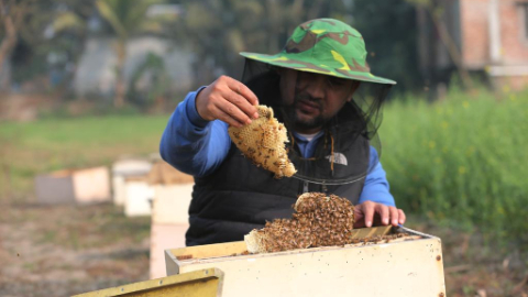 Beekeepers harvest honey in Munshiganj, Bangladesh