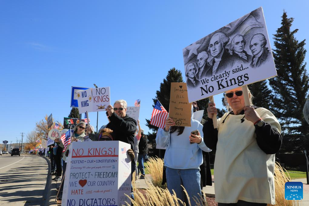 NEW YORK/SAN FRANCISCO, Oct. 18 (Xinhua) -- Tens of thousands of people took to the streets across 2,700 U.S. cities and towns on Saturday for the second round of the nationwide "No Kings" protests, the largest single-day demonstration in American history.