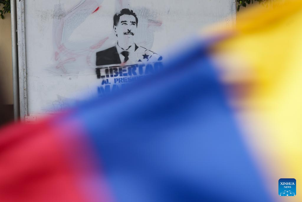 A slogan is seen during a protest condemning U.S. attack on Venezuela in Mexico City, Mexico, Jan. 10, 2026. (Photo by Francisco Canedo/Xinhua)