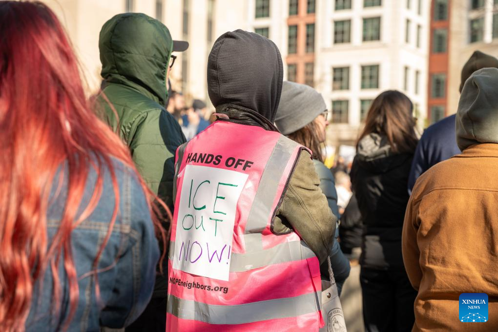 People attend an "ICE Out for Good" protest against U.S. Immigration and Customs Enforcement (ICE) in Washington, D.C., the United States, on Jan. 11, 2026. (Photo by Li Yuanqing/Xinhua)