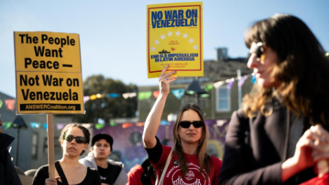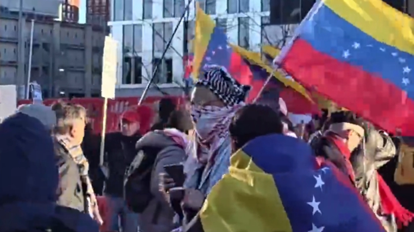 Update: Protesters rally outside U.S. embassy in London against military actions in Venezuela