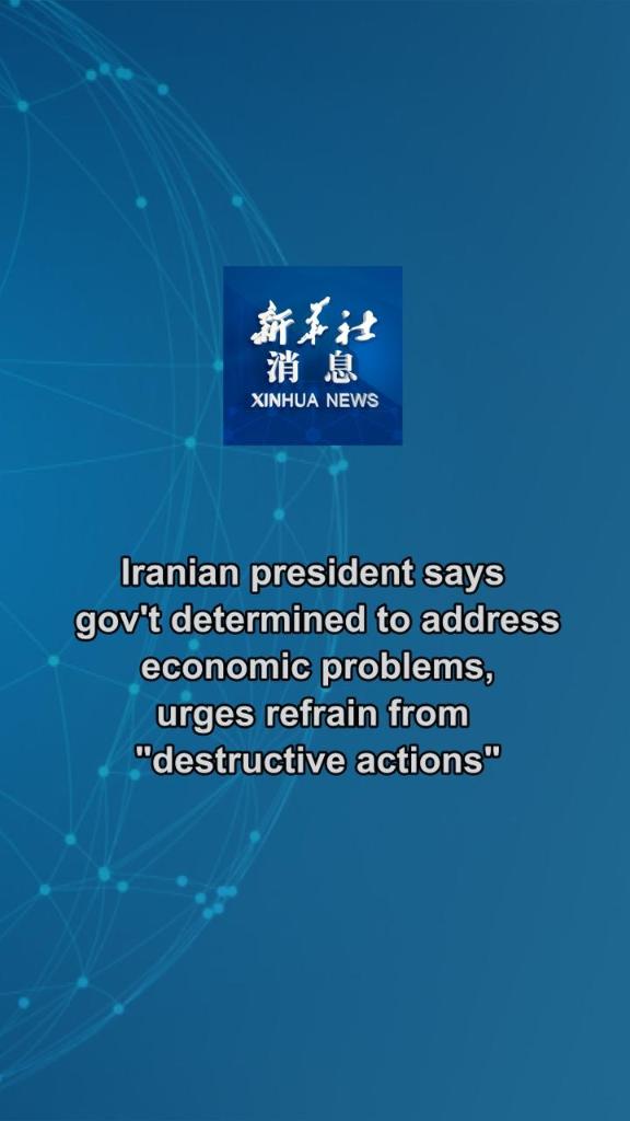 Xinhua News | Iranian president says gov't determined to address economic problems, urges refrain from "destructive actions"