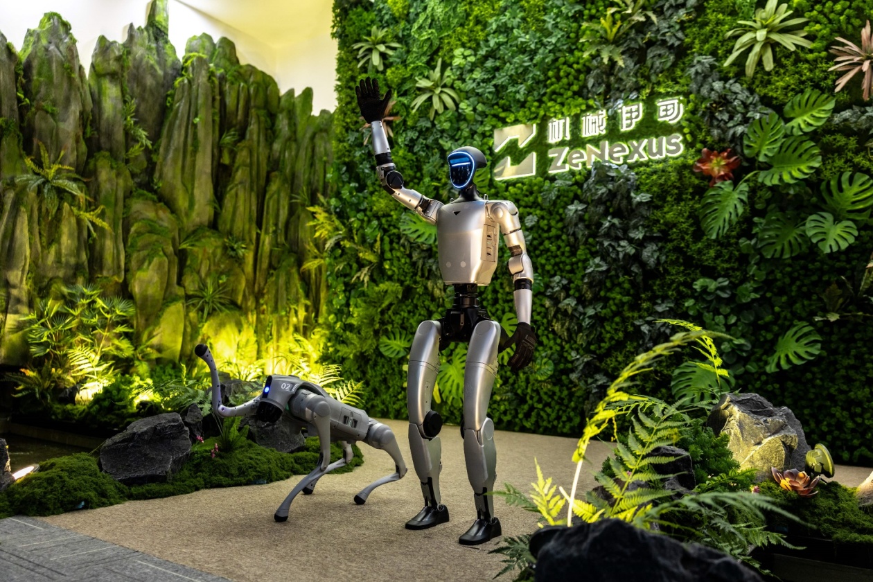 北京朝阳波士瑞达奔驰汽车4S店内,500平方米的机器人展厅里上演着科技、自然与生活的交融:搭载多模态感知算法的陪伴机器人,能精准捕捉人类情感信号;配备高精度机械臂和灵巧手的机器人在山水丛林中弹奏着动听的音乐;融合仿生步态技术的四足机器人,在模拟生态场景中自如穿梭……这便是机器人4S店——机械伊甸的日常场景。