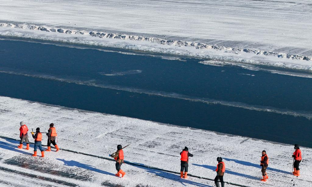 十几名采冰汉子