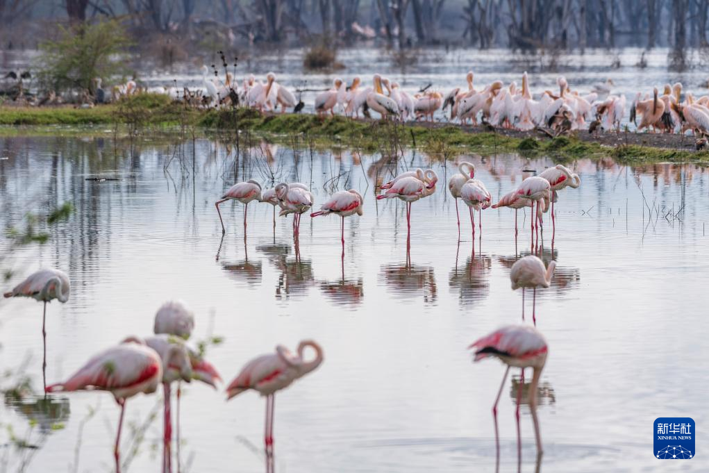 这是3月2日在肯尼亚纳库鲁湖国家公园拍摄的火烈鸟。