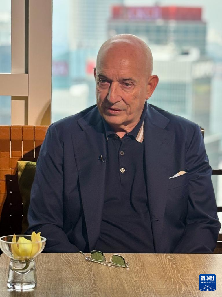 2025年11月18日,国际航运公会主席埃马努埃莱·格里马尔迪接受新华社记者专访。 新华社发(许淑敏摄)