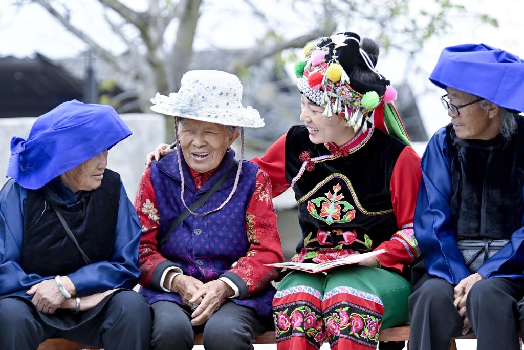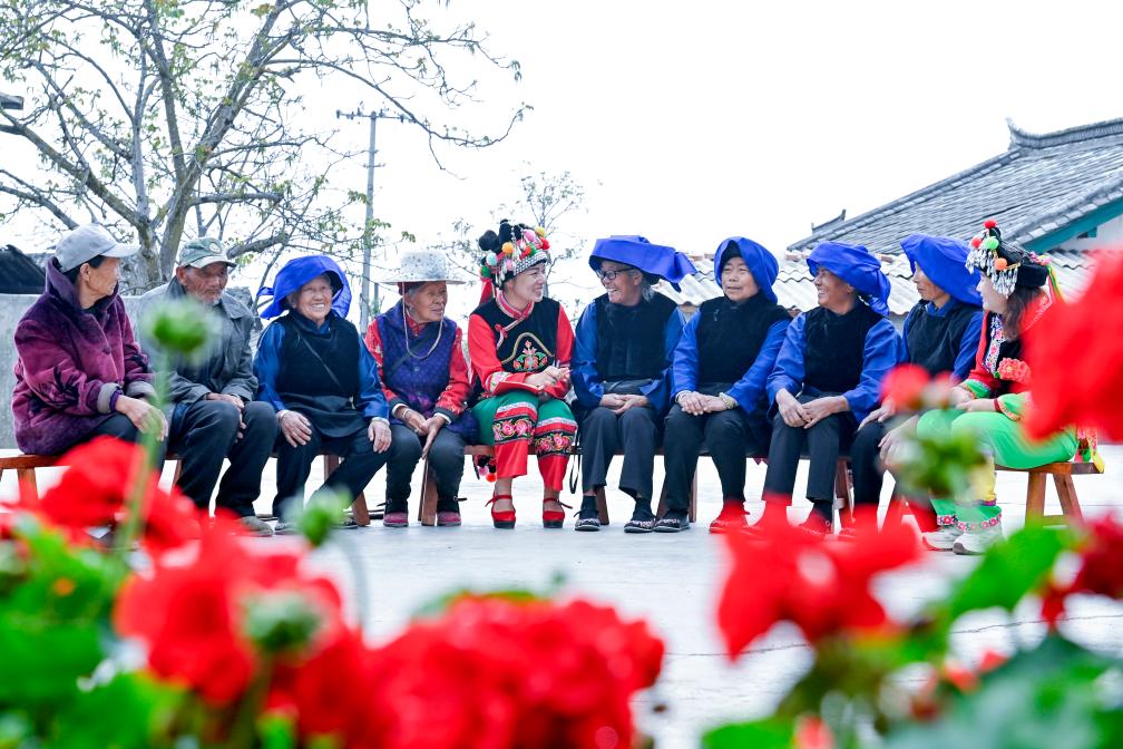 仲春时节,南涧县无量山镇新政村山色青润、茶垄叠翠。全国人大代表鲁丽华坐在村头,用乡音向围坐的老人娓娓讲述与大家息息相关的好政策。她时而比划手势,时而拍轻老人手背,像和自家长辈话家常般自然亲切。