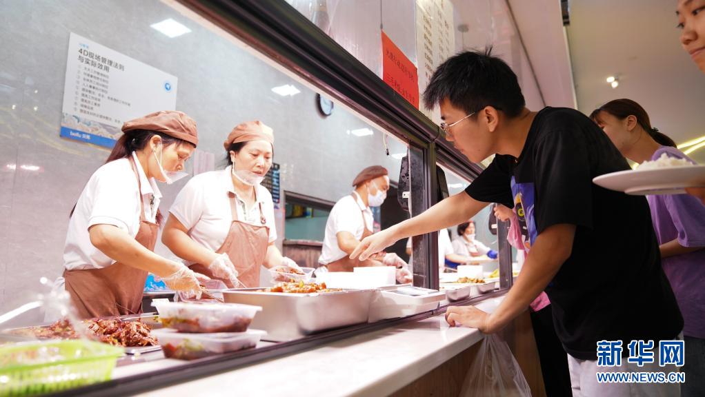 6月1日,趙建軍在學(xué)校食堂內(nèi)為母親打飯。新華社記者胡晨歡攝