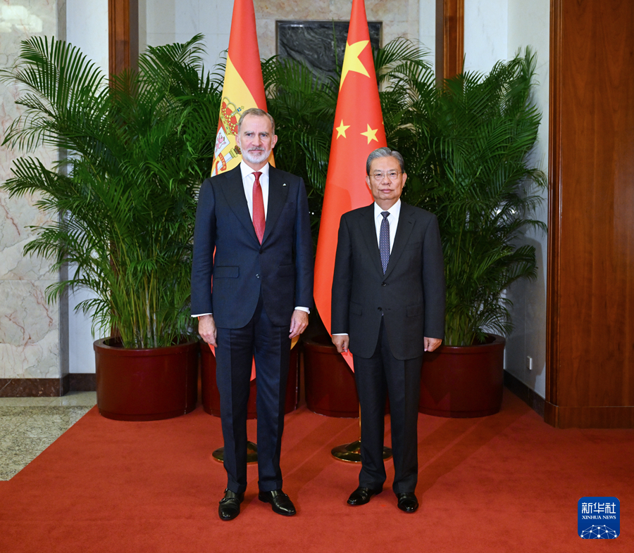 11月12日下午,全国人大常委会委员长赵乐际在北京会见西班牙国王费利佩六世。