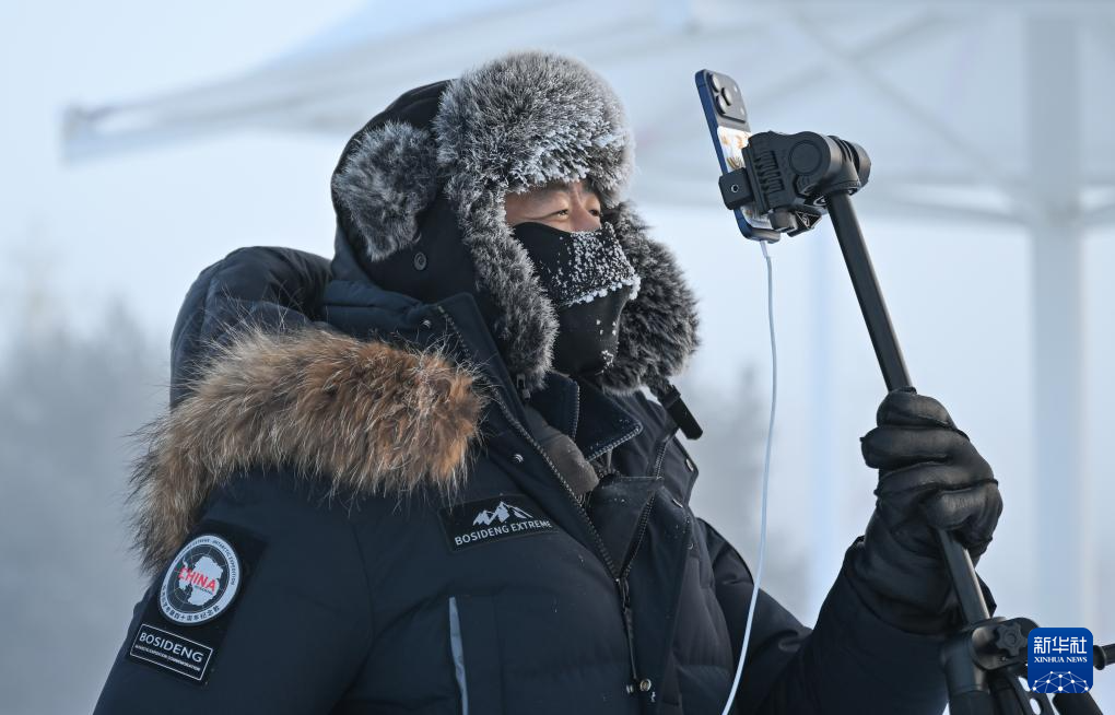 12月26日,短视频平台主播在内蒙古呼伦贝尔市根河市冷极广场直播。