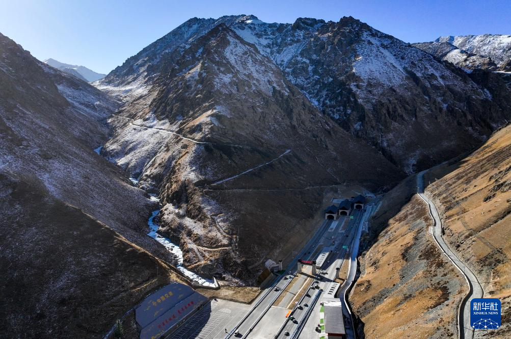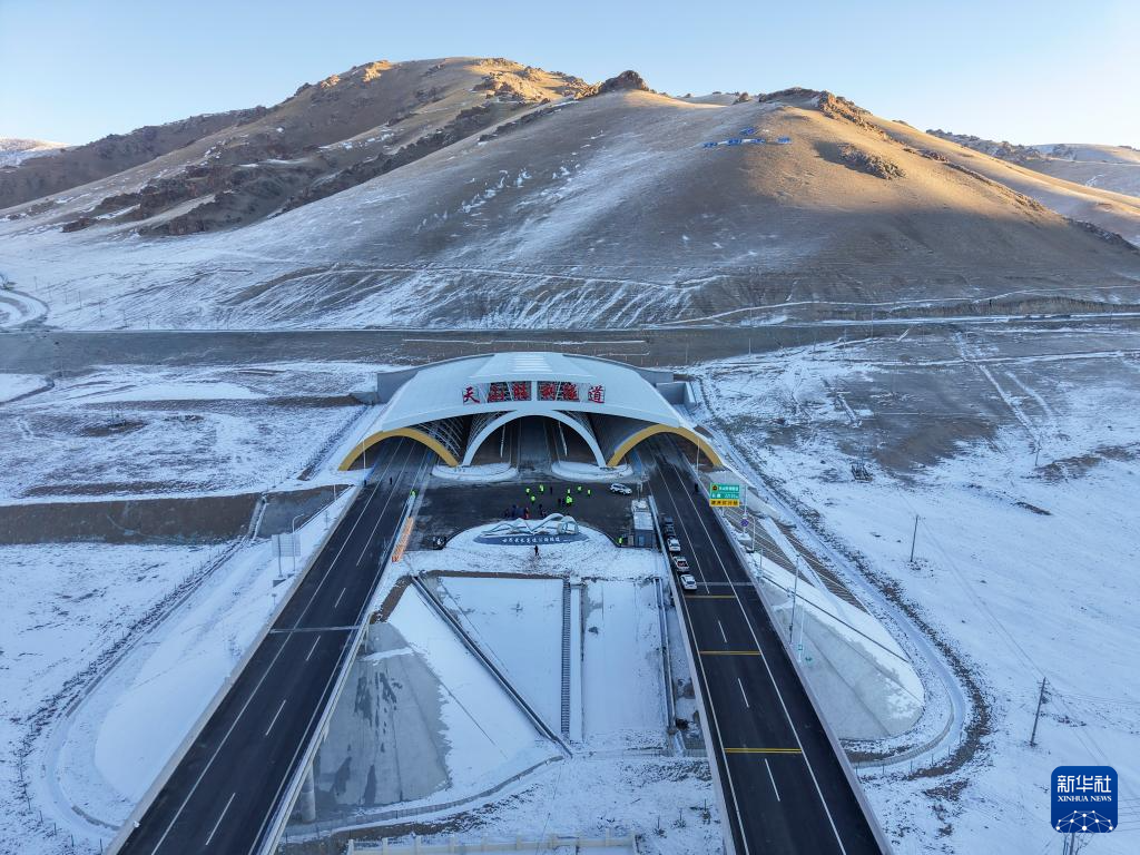 12月26日拍摄的新疆乌尉高速公路天山胜利隧道口(无人机照片)。