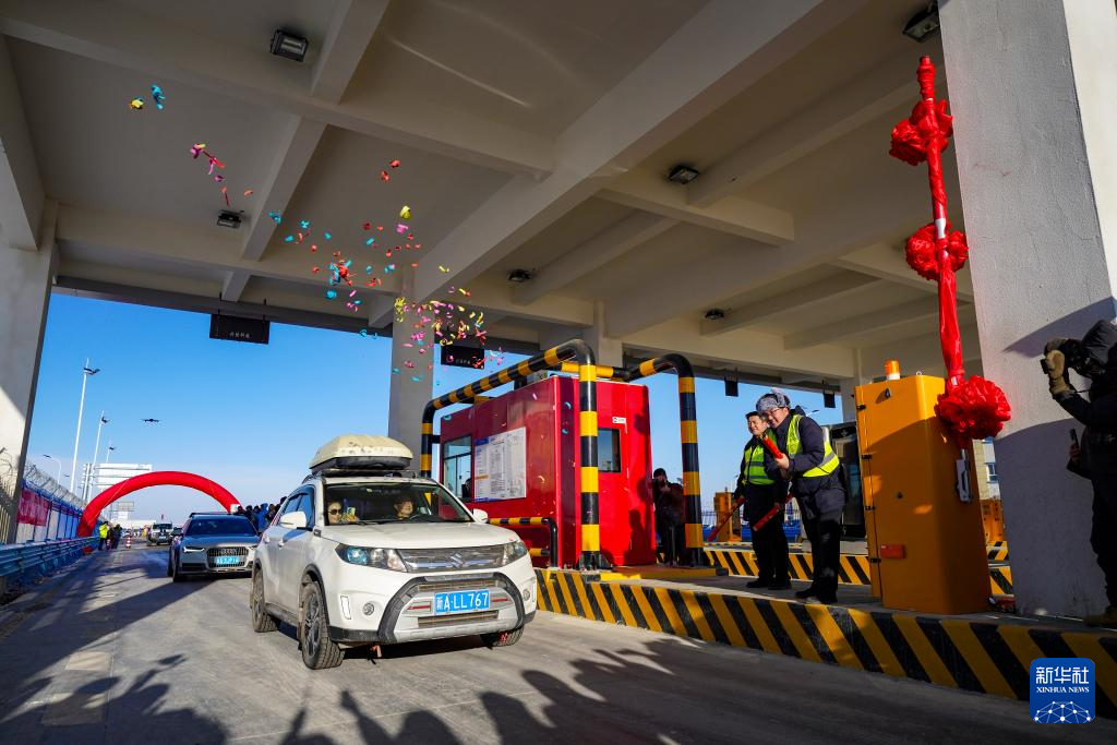 12月26日,车辆通过位于乌鲁木齐县的永丰收费站驶入乌尉高速公路,吸引媒体工作人员关注。