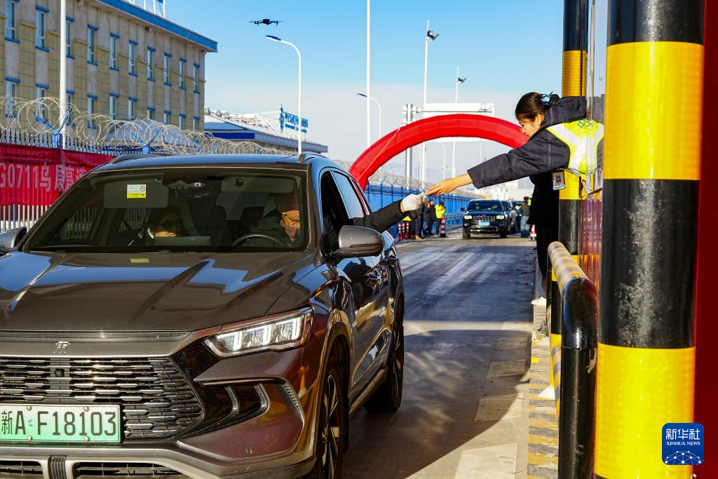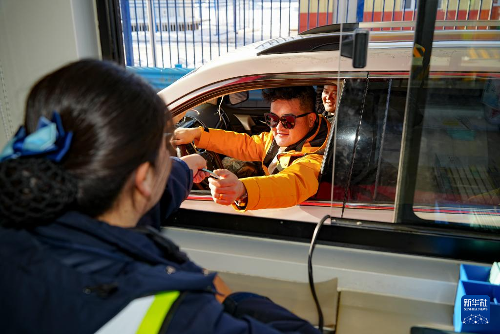 12月26日,在乌尉高速公路永丰收费站,工作人员向驾驶员发放通行卡。