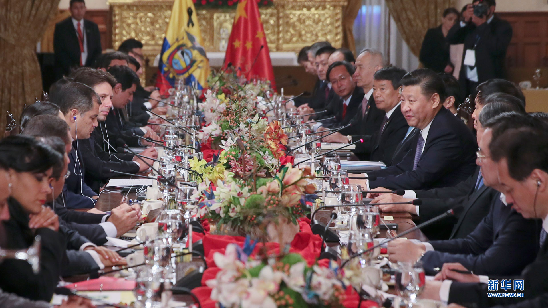 當?shù)貢r間11月17日,國家主席習(xí)近平在基多同厄瓜多爾總統(tǒng)科雷亞舉行會談。 新華社記者 鞠鵬 攝2016-11-18