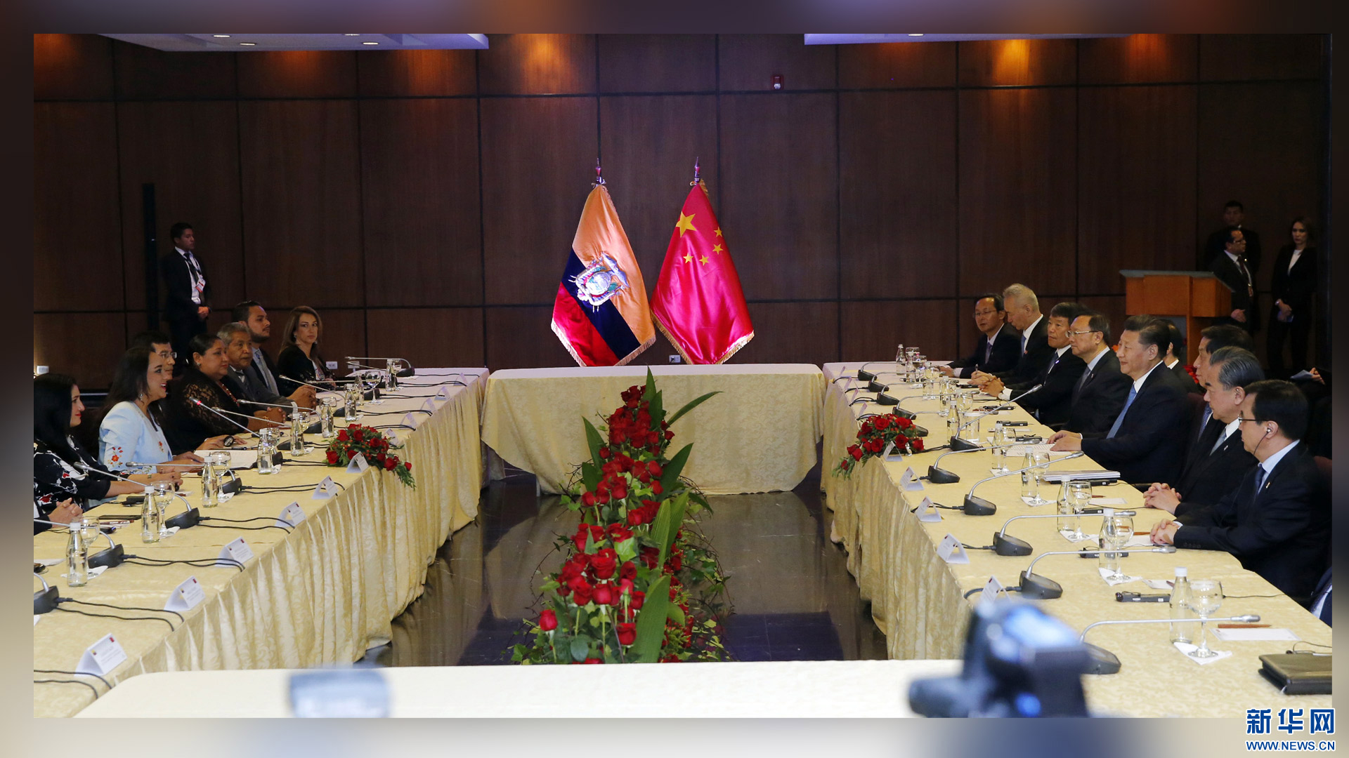 當?shù)貢r間11月18日,國家主席習(xí)近平在基多會見厄瓜多爾國民代表大會主席里瓦德內(nèi)拉。 新華社記者 鞠鵬 攝2016-11-19